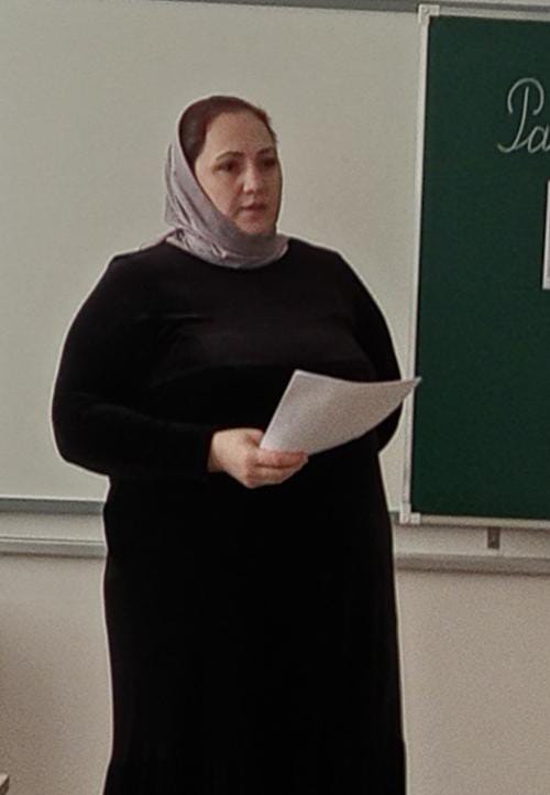 ФГАОУ ВО "Государственный университет просвещения", "Реализация системы наставничества педагогических работников в образовательных организациях",36 часов,2024г. ГБУ ДПО "Институт развития образования Чеченской Республики", "Введение обновленных федеральных государственных образовательных стандартов общего образования: управленческий аспект",36часов,2023г ФГАОУ ДПО "Академия реализации государственной политики и профессионального развития работников образования Министерства просвещения Российской Федерации", "Использование современного учебного оборудования в центрах образования естественно-научной и технологической направленностей "Точка роста",36 часов,2022г ФГАОУ ВО "Государственный университет просвещения", "Современные достижения откчественной науки для обеспечения технологического суверинитета страны (химия)",28 часов,2025г. ИРО ЧР по программе "Управление системой методического обеспечения образовательной деятельности" 48 часов, 2025г.